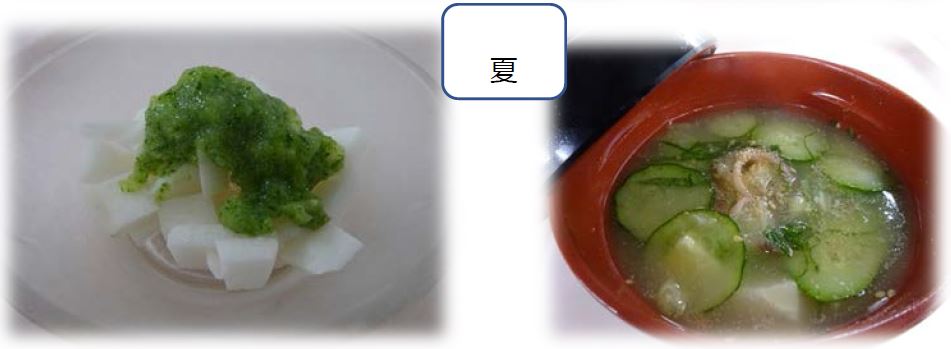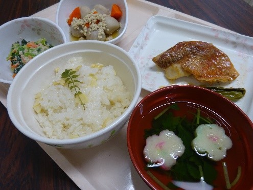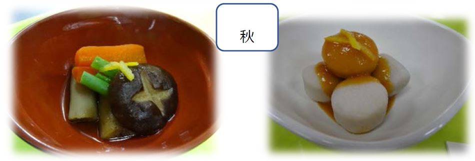 そこで、暦の上での祝日や記念日に行う、いわゆる「行事食」は今までも実施していましたが、それ以外に、その季節に特有の旬の食材を用いた料理を1品、月に1~2回程度ですが、日常のお食事に加える試みを始め、現在まで継続しています。