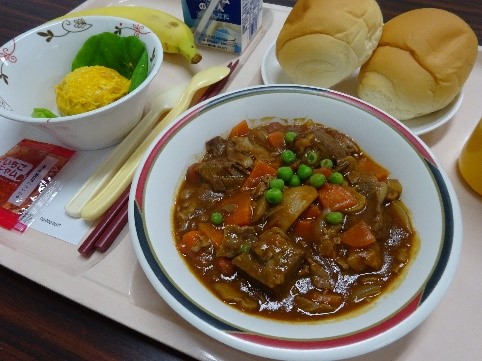 当院では、災害に備えて非常食を備蓄しておりますが、賞味期限が前に、備蓄食材を用いた料理を 患者さんのお食事の食材として取り入れ、提供させて頂いております。