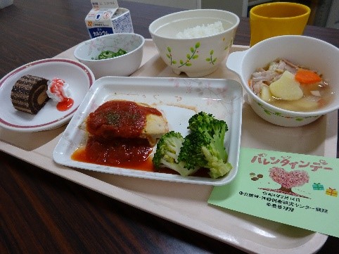 患者さんから、この食事のネームカードに、時折、返礼の温かいメッセージが書かれており、癒しの食事をと思っていた、私達、栄養管理室スタッフ及び委託職員一同が反対に癒されております。