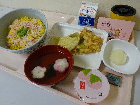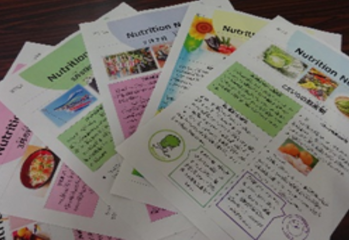 入院中の患者さんには食事で「癒し」を感じて頂けるよう、季節食材を用いた料理に関するお知らせを作成し病棟へ掲示しています。