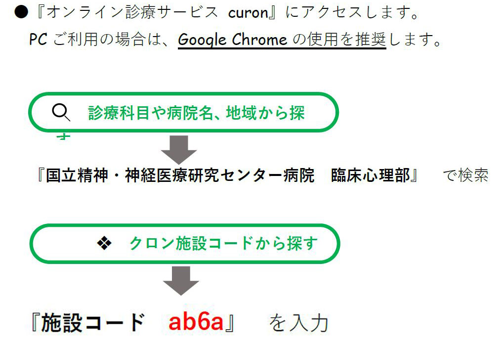 このサービスをご利用いただくために、まずオンライン診療サービス「curon(クロン)」にアクセスしていただき、登録をしていただく必要があります。