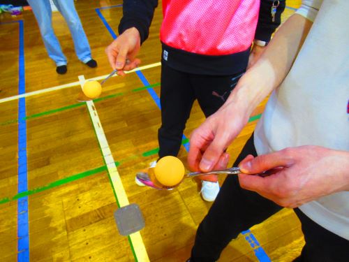 種目は、王道の網引きや玉入れ、パン食い競争や借り物競争の他に、デイケアで流行しているボッチャやドッヂボール、スプーンリレーなども行いました。