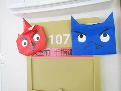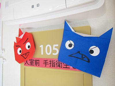 患者様と一緒に手を添えて折った鬼が病棟に出現しました!!