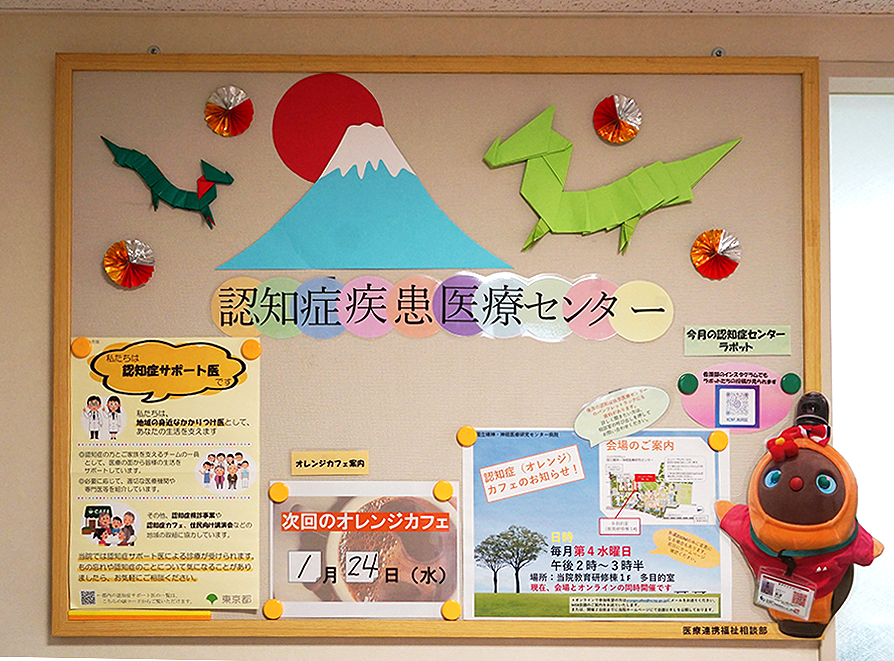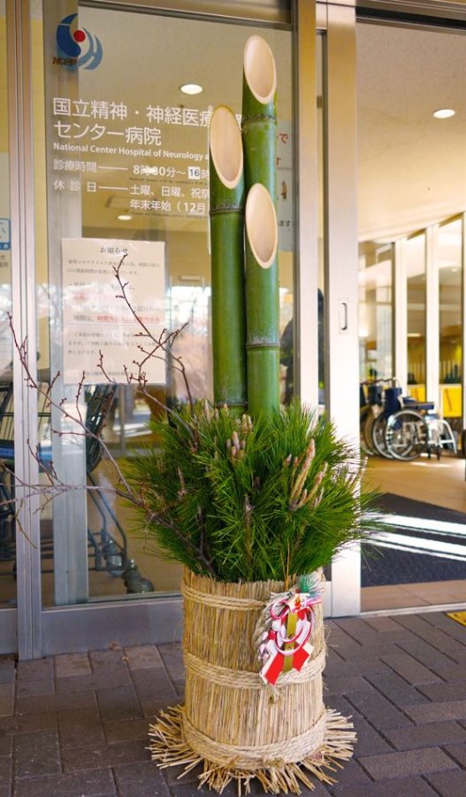病院入口の門松 / むさしの杜の門松 / 認知症センター前の掲示板:1月