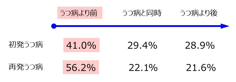 うつ病には不眠症が高率に併存することが知られています。なかなか寝付けない(入眠困難)、夜間に目覚めてしまう(中途覚醒)、予定よりも早く目覚めてしまってその後寝付けない(早朝覚醒)といった症状を不眠症状と呼びますが、うつ病患者の77~90%にこれらの不眠症状のいずれかが出現すると報告されています1)。早朝覚醒がうつ病に特異的な不眠症状であると古くから言われていますが、うつ状態のときに最も出現しやすい症状は入眠困難です2)。不眠症状はうつ病に先行して出現することが多いと言われており、うつ病患者の約41%で、不眠症状が他の抑うつ症状に先行すると報告されています3)(図1)。