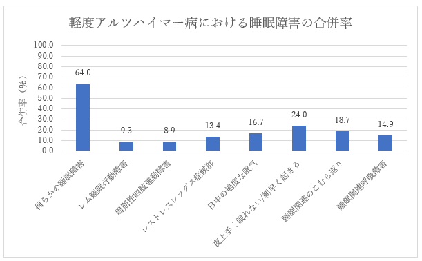 図1 軽度アルツハイマー病における睡眠障害の合併率(Rongve Aら(2010)のデータを用いて作図(8))