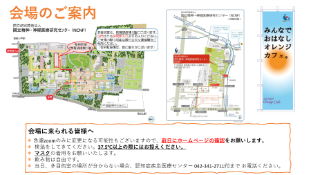 • 詳細につきましてはオレンジカフェメールアドレス(orangecafee@ncnp.go.jp)までご連絡ください。