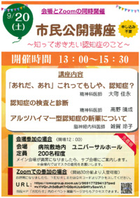 2025年9月20日(土)市民公開講座 ~ 知っておきたい認知症のこと ~ 会場およびオンライン開催のご案内